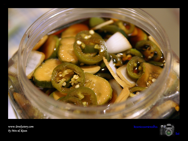 - 뜨겁게 끓인 소스에 야채를 바로 넣어주는게 아삭아삭한 장아찌의 비밀